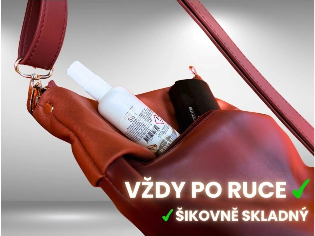 Kompaktní sprej pro rychlé čištění brýlových skel i obrub.